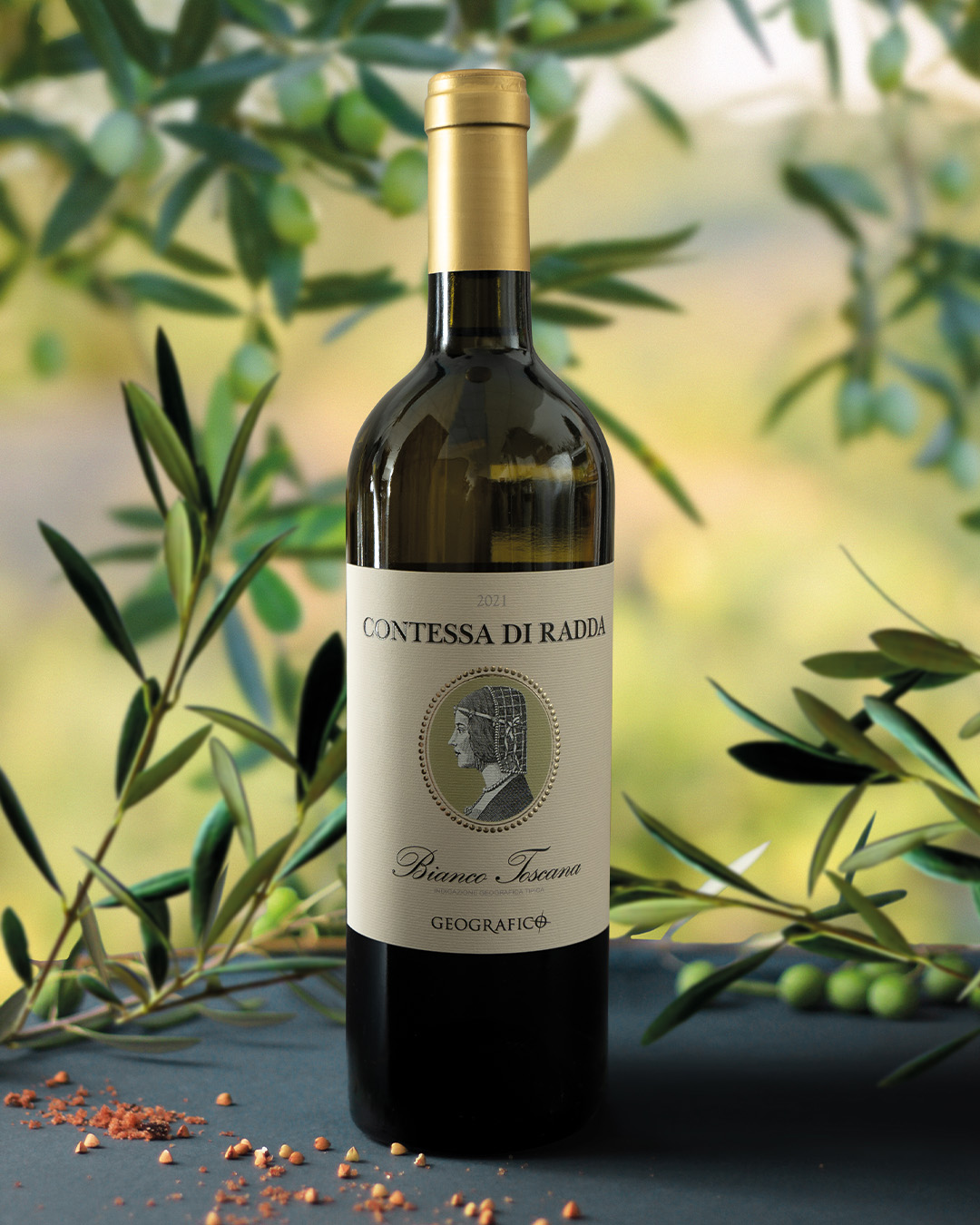 Fiore all’occhiello del Geografico, la linea “Contessa di Radda” vanta una tradizione antica e gloriosa. Il suo nome celebra la storia millenaria del Chianti Classico, omaggiando l’illustre Willa di Toscana. Donna forte e coraggiosa, Willa tenne il timone della Toscana nei difficili anni del X secolo, assieme al figlio Ugo, ricordato da Dante nella Divina Commedia come “Gran Barone”.