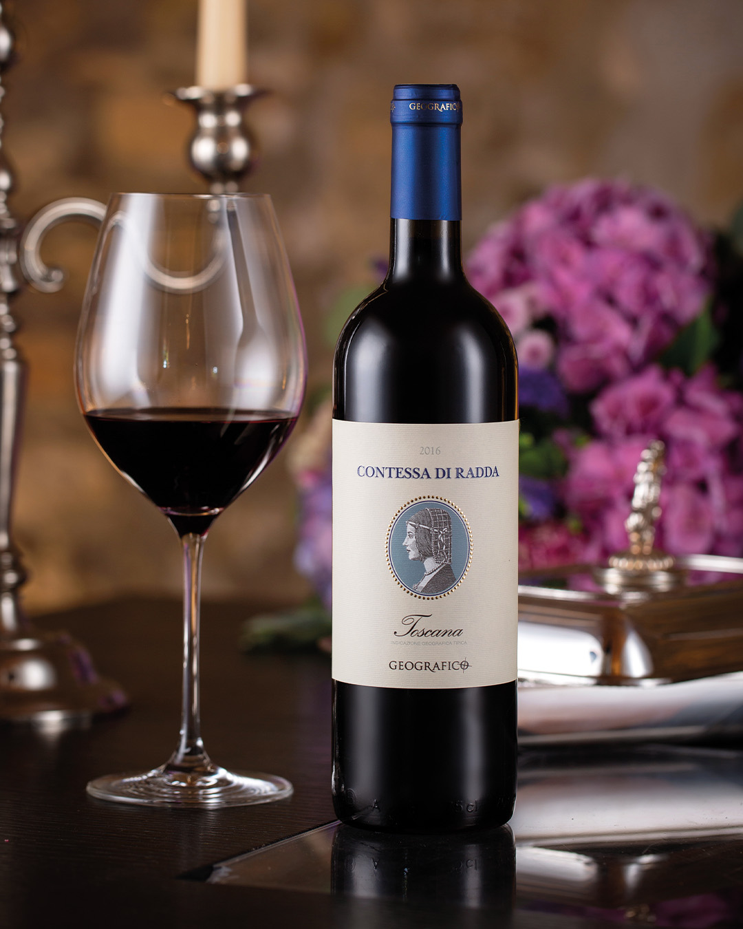 Ogni goccia di questa preziosa selezione di vini ricorda il profondo legame col territorio, custodendo l’antica tradizione vinicola tramandata gelosamente dai viticoltori locali. Solamente le migliori uve possono ambire alla prestigiosa etichetta della “Contessa di Radda”, che dal 1978, anno della sua prima storica vendemmia, accompagna la storia del Geografico, innalzando il vessillo delle terre del Chianti Classico. Con i suoi eleganti aromi, “Contessa di Radda” è una poesia d’amore dedicata alla tradizione e alla bellezza che da secoli ci circonda.
